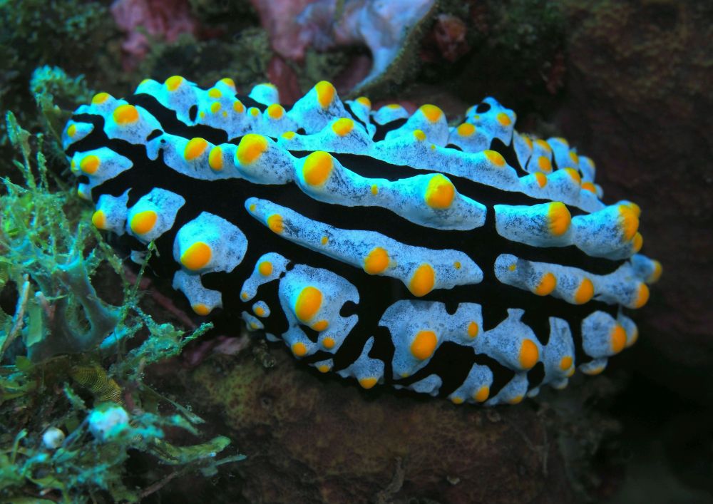 | ポイント | 【恩納村近海の個性豊かなウミウシたち】 シンデレラウミウシ 淡い紫色やピンクの体色が非常に上品で、その名の通りドレスを纏ったお姫様のような華やかさがあります。 ミスジアオイロウミウシ 鮮やかな青い体に黒い3本のライン(三筋)が入るのが特徴で、沖縄の青い海によく映えるポピュラーな種です。 ミドリリュウグウウミウシ 黒地に鮮やかな緑のラインや斑点が入る、蛍光色のようなサイバーな配色がかっこいい大型のウミウシです。 メレンゲウミウシ 白く波打つ体がまるでお菓子のメレンゲのようで、触ると意外と硬く、フチの黄色いラインがアクセントになっています。 ミノウミウシ 背中に「ミノ」と呼ばれる突起をたくさん持ち、揺れる姿が美しいですが、種類が非常に多く同定が難しいグループでもあります。 コールマンウミウシ 白や黄色をベースに黒い網目模様が入る独特なデザインで、触角や二次鰓(えら)がオレンジ色なのが特徴です。 |